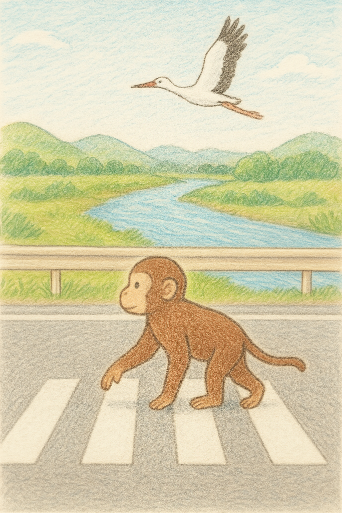 元空想上の生物コウノトリ(笑)とお猿さんのコラボです。
