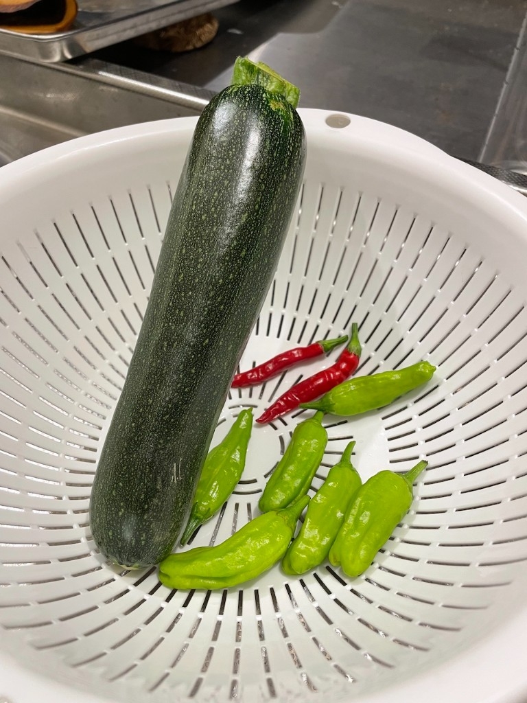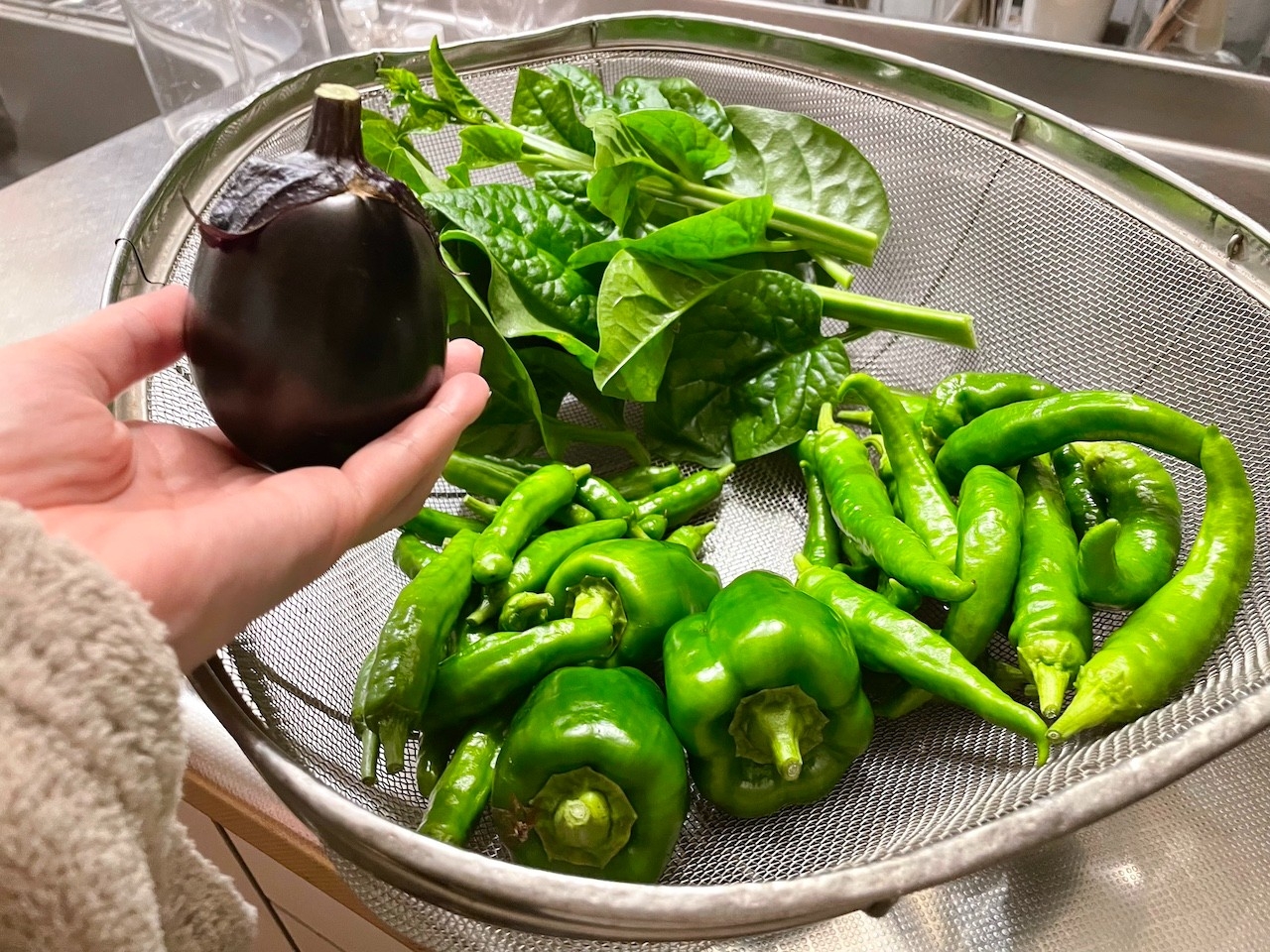 ズッキーニ、ナス、ピーマン、シシトウ、トウガラシ、九条ネギ、ツルムラサキ、スイスチャード…。