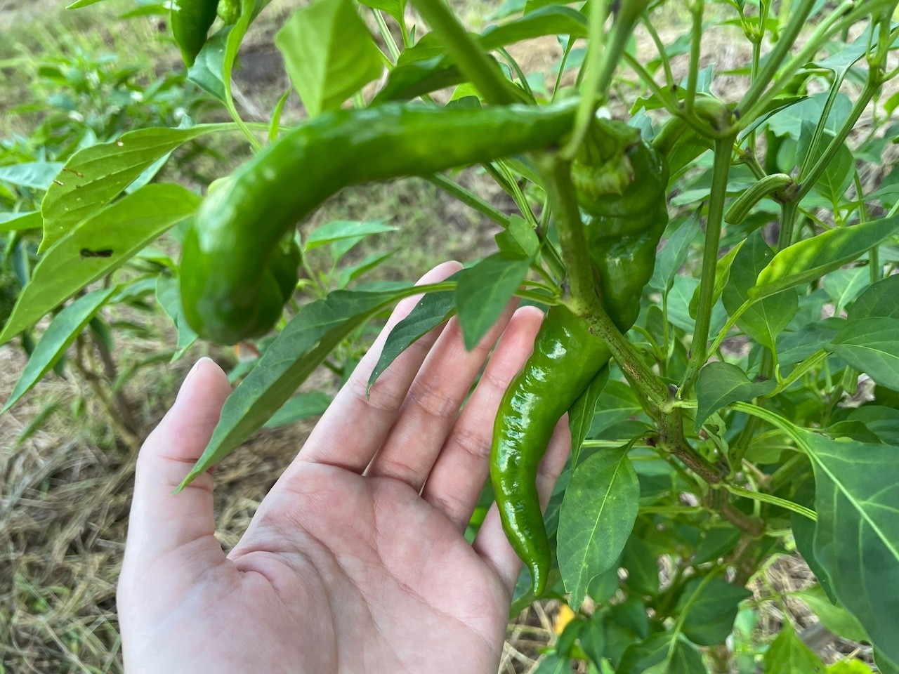 これまでぽつぽつだったピーマンも複数採れるようになりました。