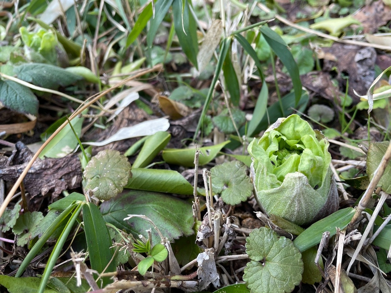 まず、黒く枯れたフキノトウの葉があるゾーンを探します。