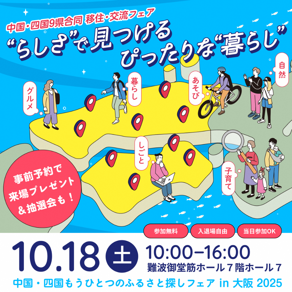 “らしさ”で見つける ぴったりな“暮らし” 中国四国9県合同移住・交流フェア (fsf2025.jp)